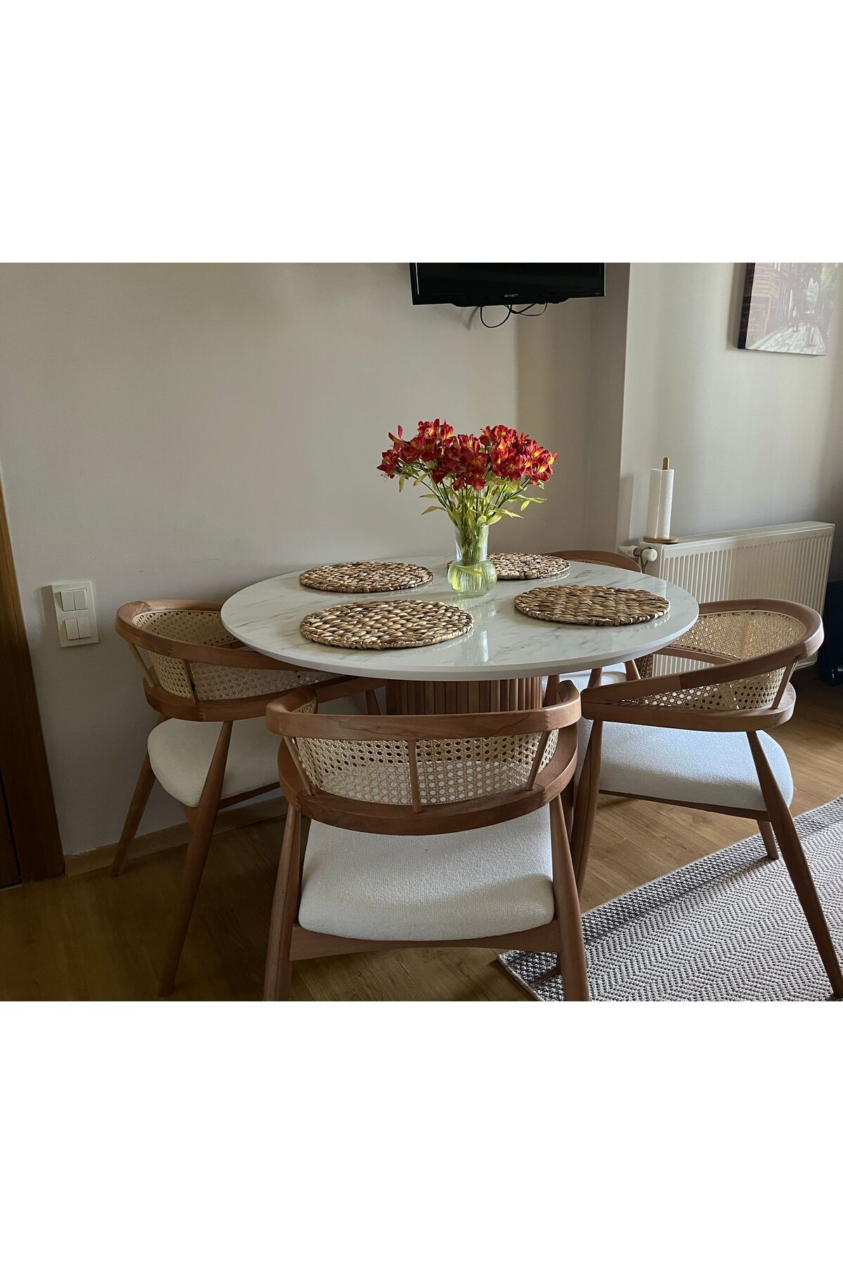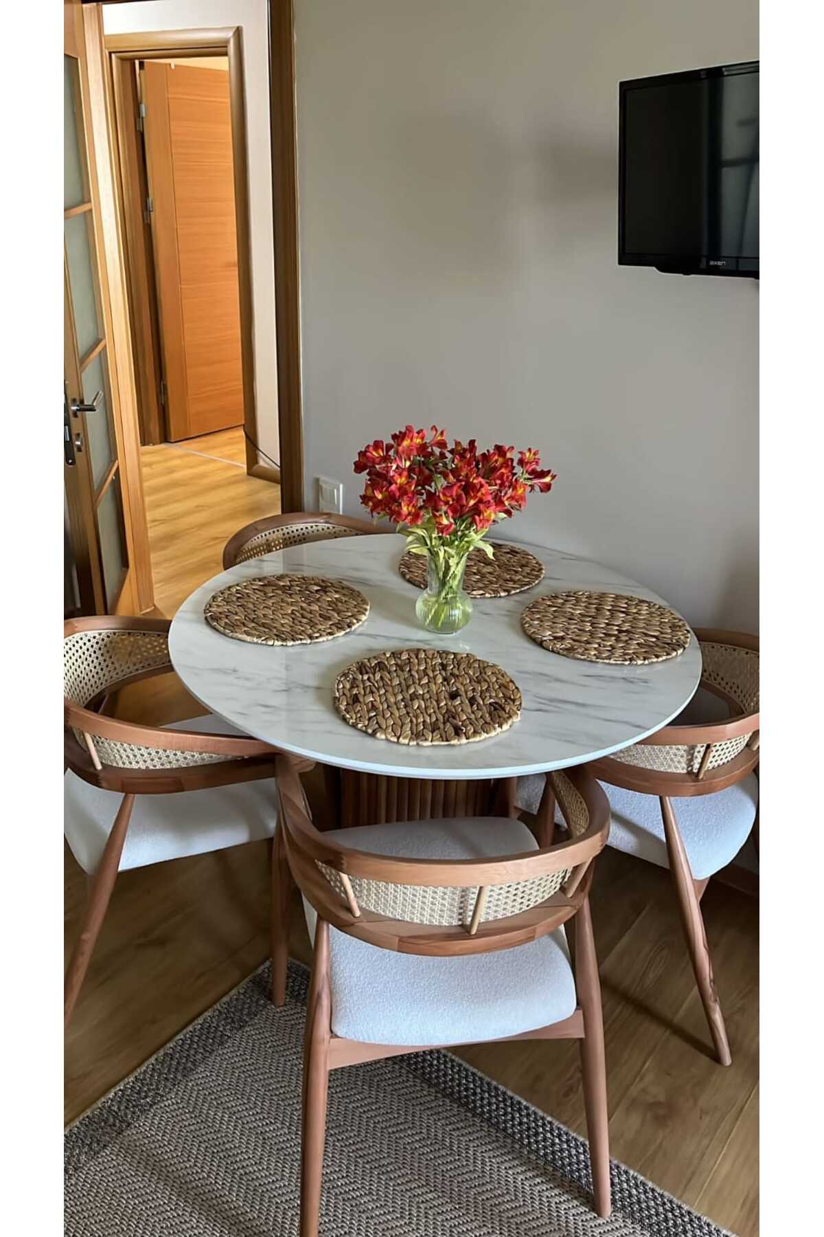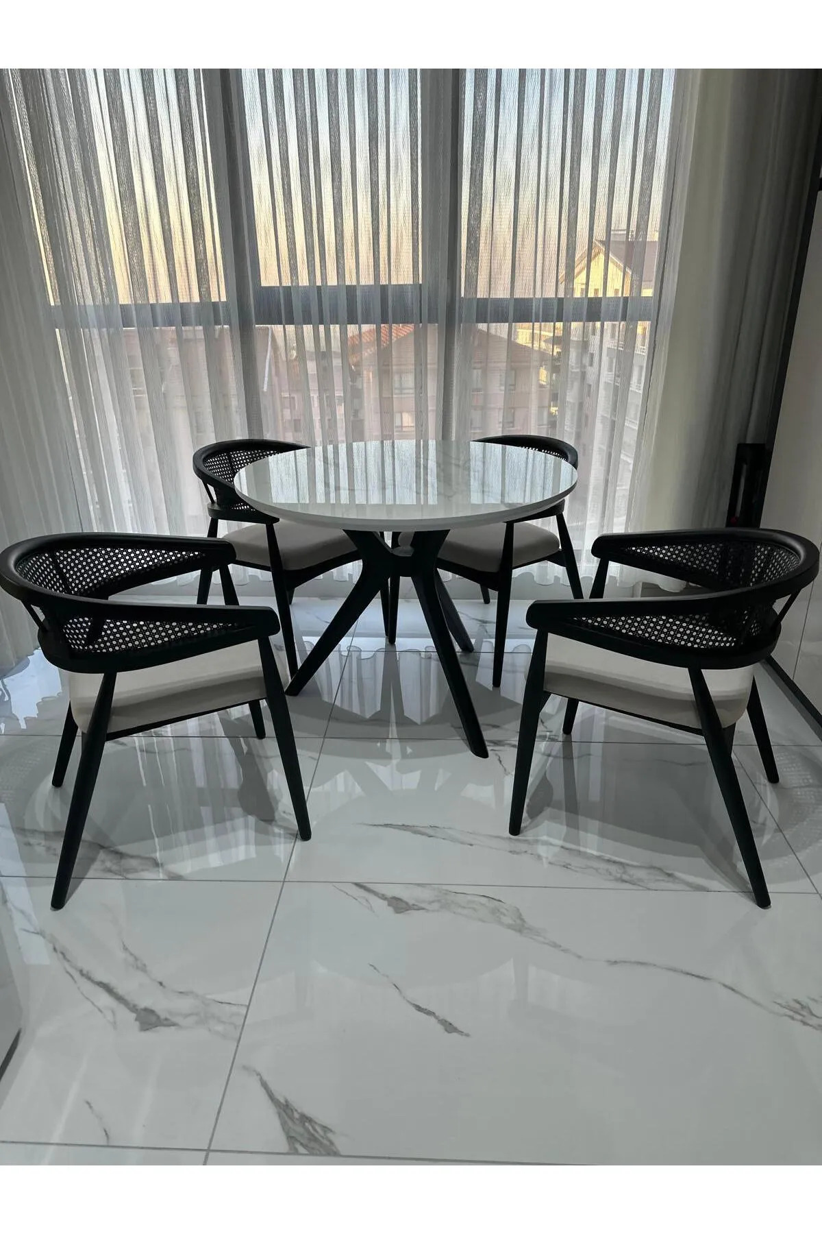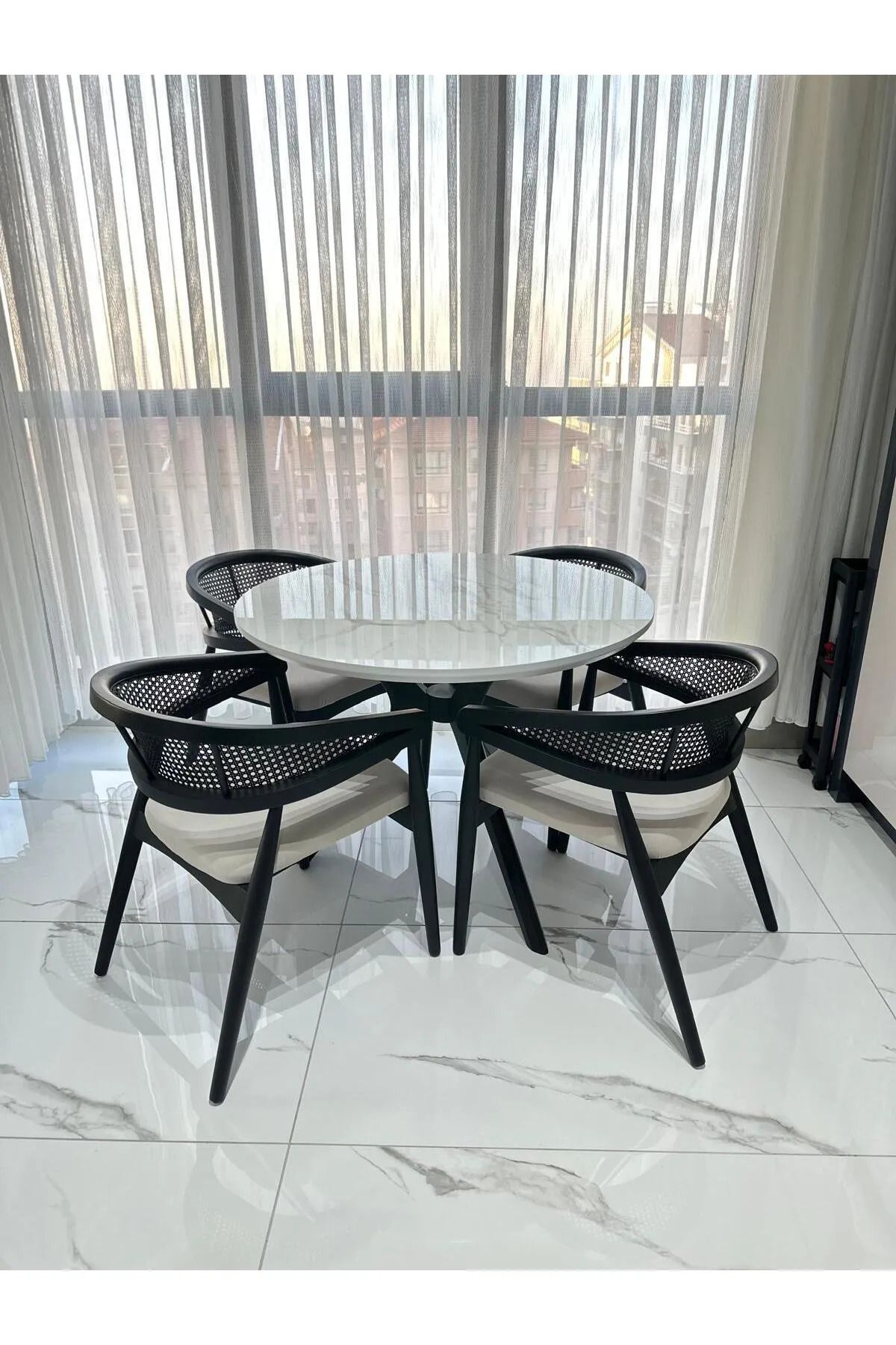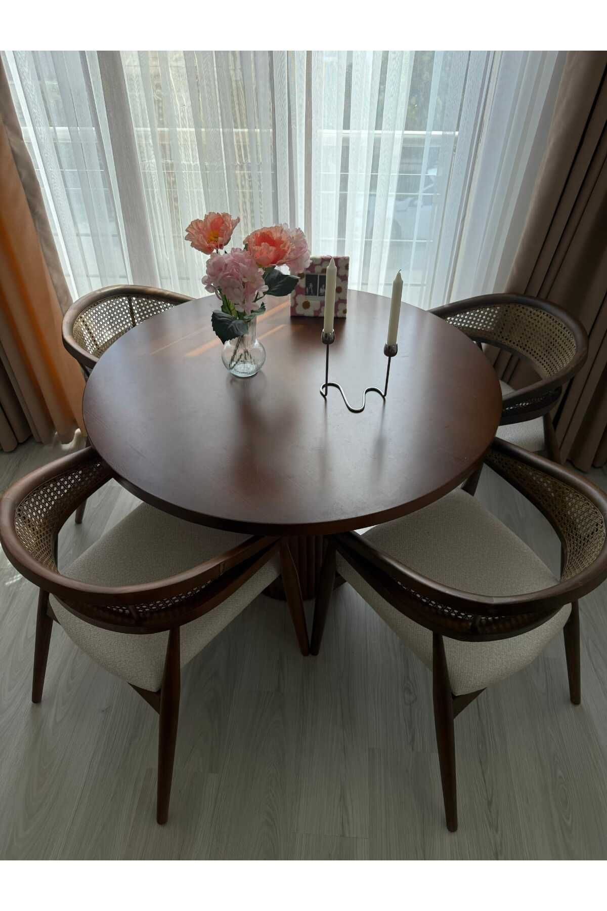Takım 4 Adet Sandalye + Yuvarlak Masa İçermektedir.