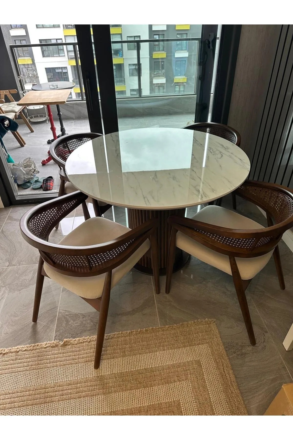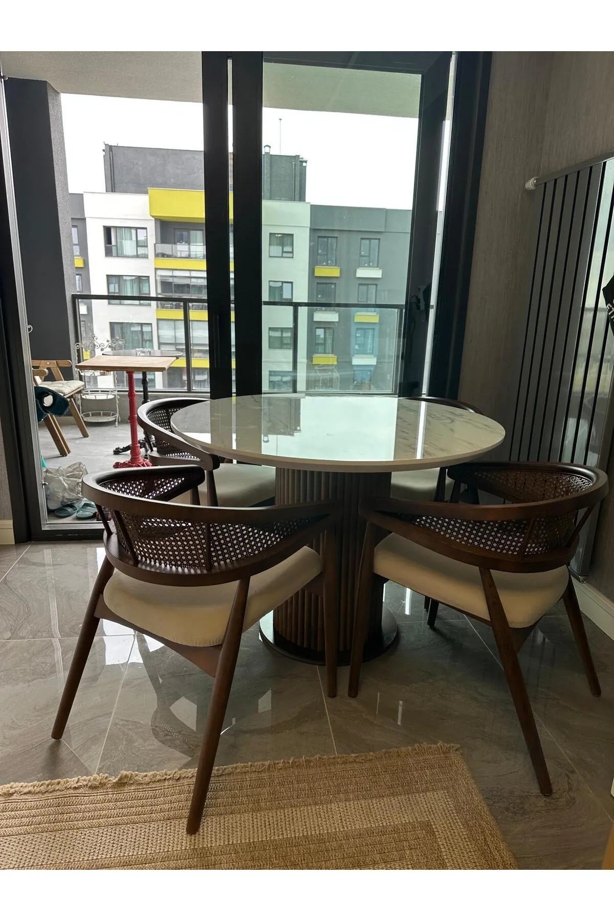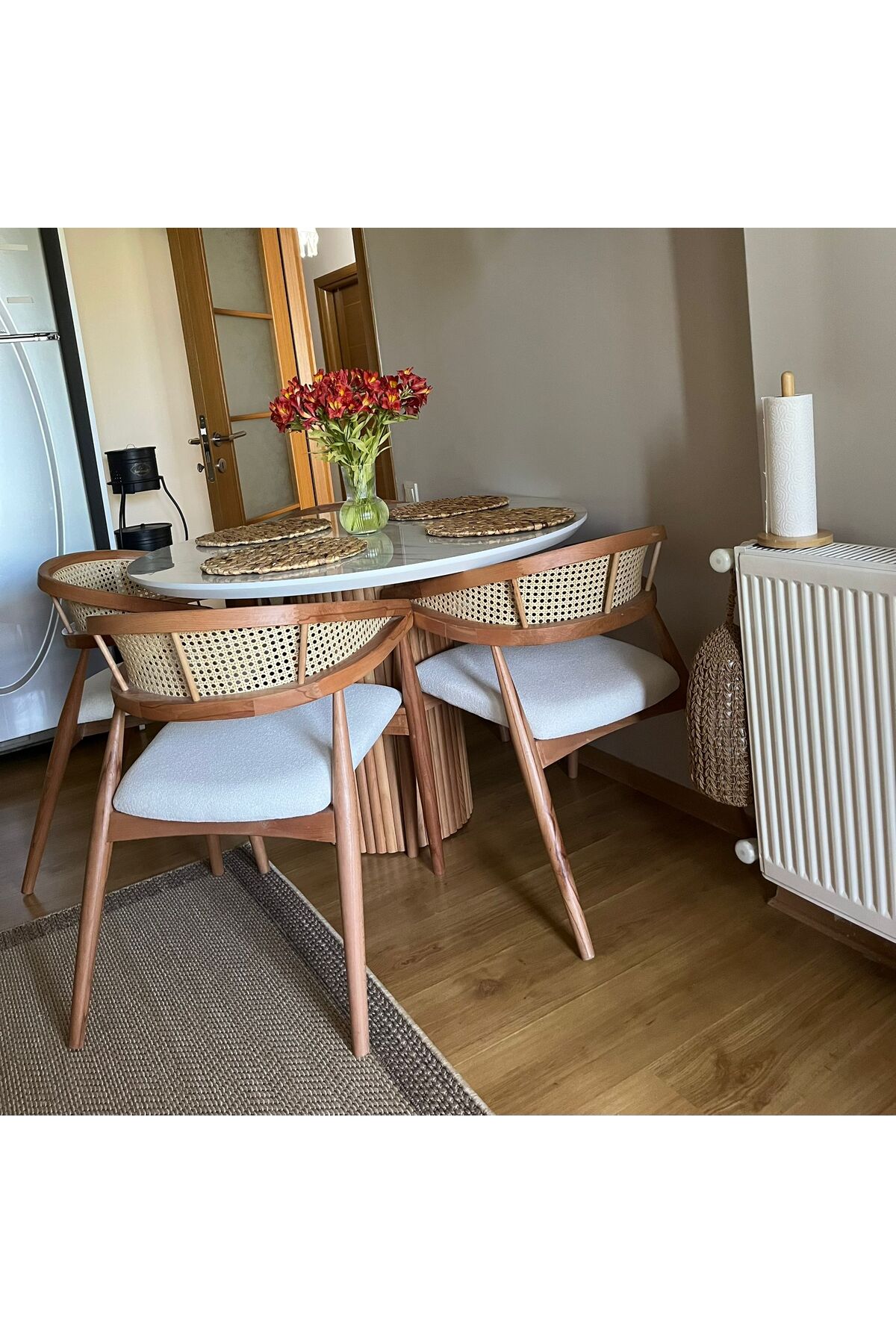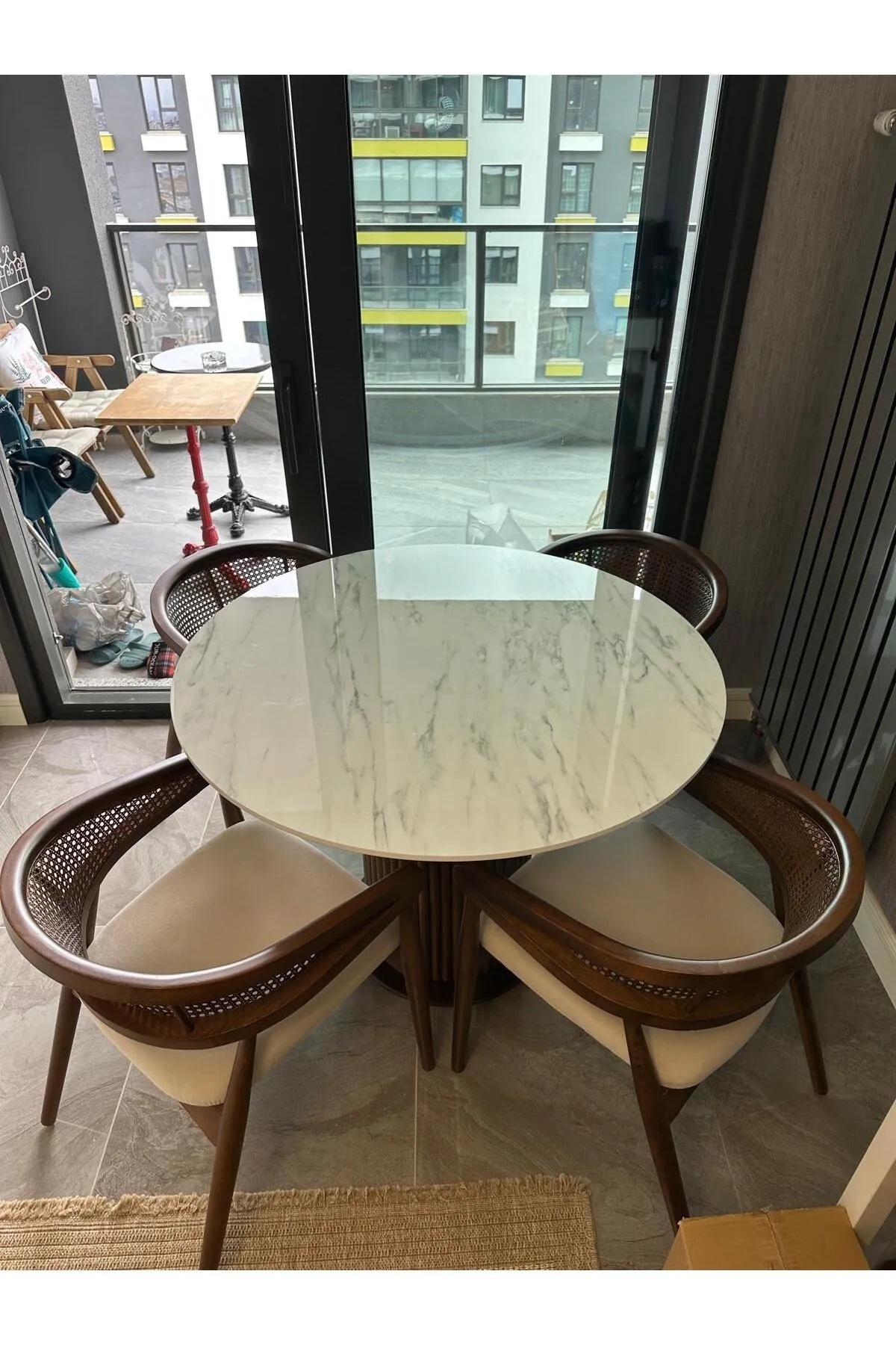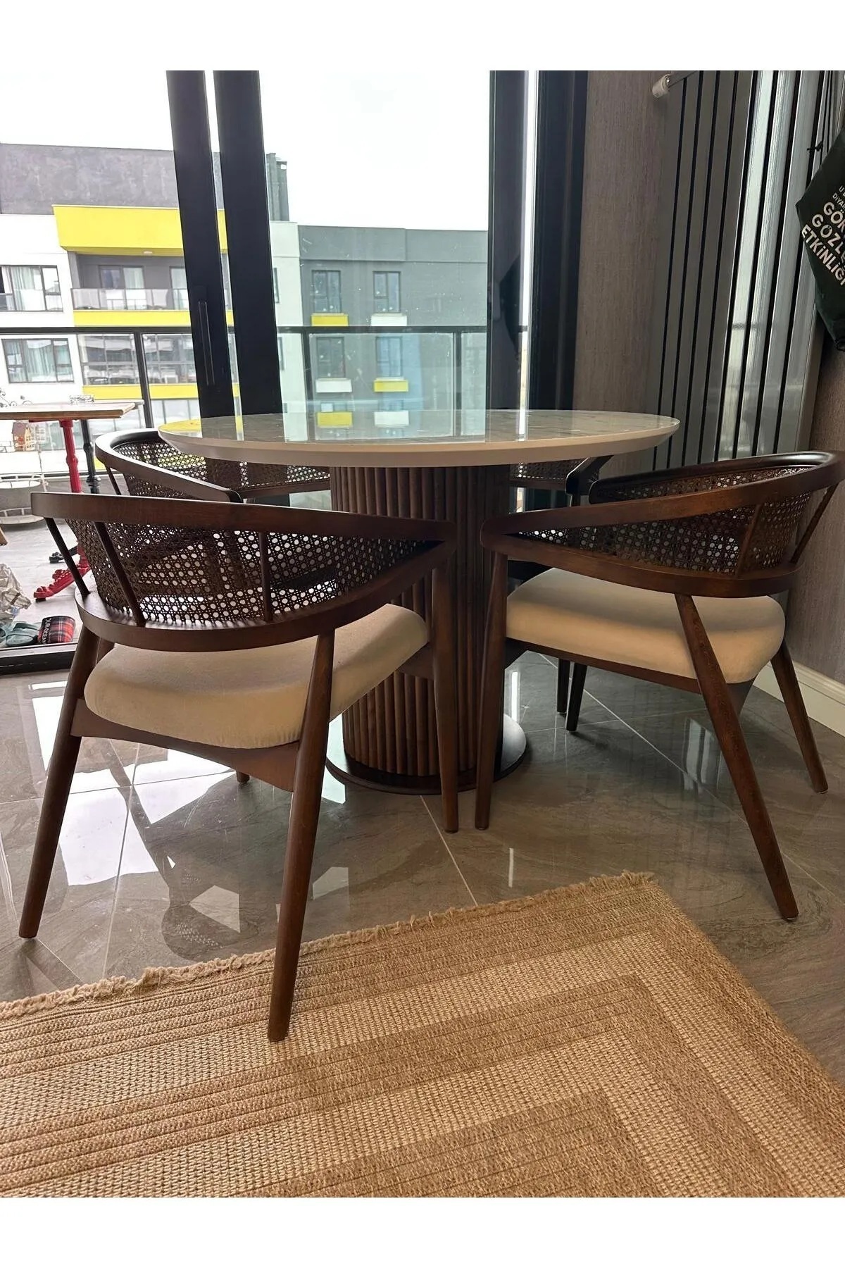 Takım 4 Adet Sandalye + Yuvarlak Masa İçermektedir.