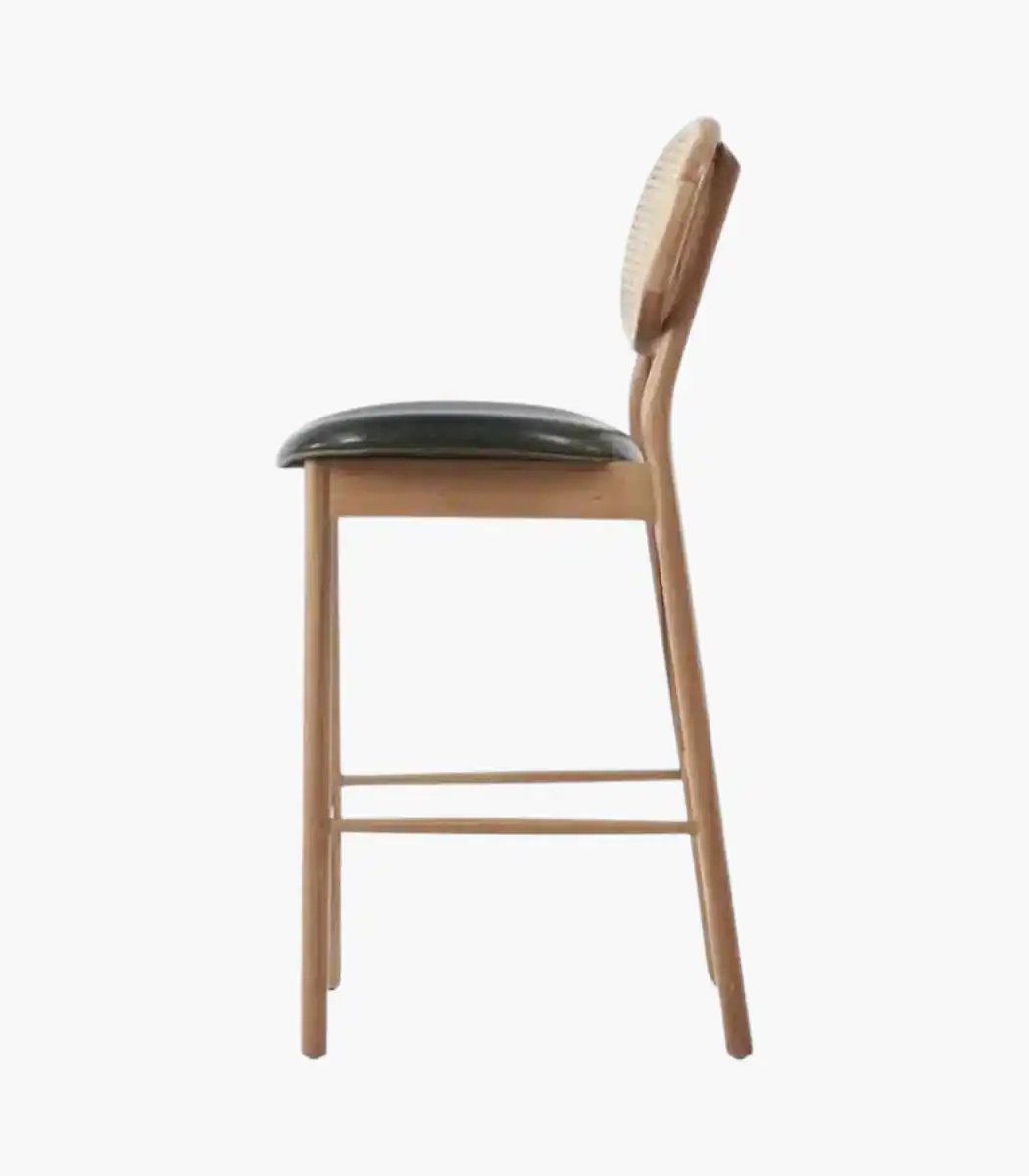 Miami bar sandalyesi, hem estetik hem de işlevsellik arayanlar için özel olarak tasarlanmıştır. Sırt kısmında kullanılan doğal hazeran malzeme, sandalye tasarımına zarif bir dokunuş katarken oturma kısmının geniş yapısı sayesinde üstün rahatlık sağlar. Bu sandalye, tasarım ve konforun mükemmel bir birleşimi olarak öne çıkıyor.